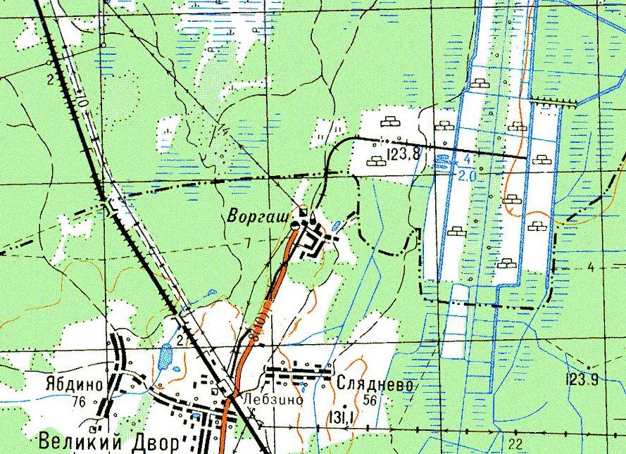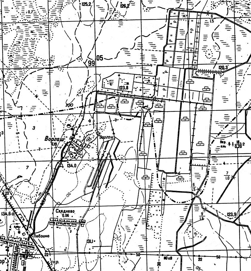Движение на перегрузочную станцию было прекращено 10 лет назад или ранее, линия Воргаш - Лебзино была полностью разобрана, насыпь местами заросла деревьями.