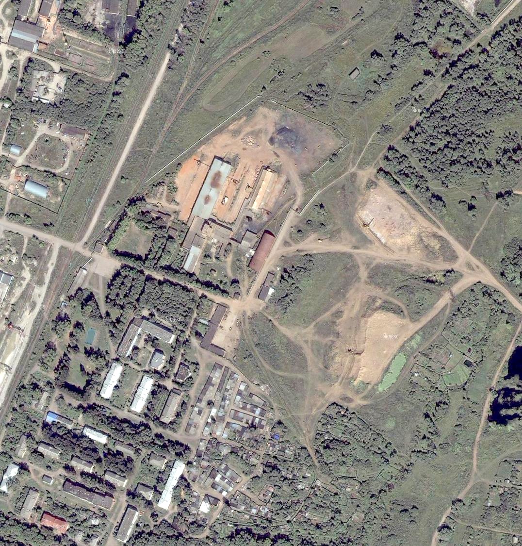 Узкоколейная железная дорога на спутниковых снимках (источник — «Maps.yandex.ru»,