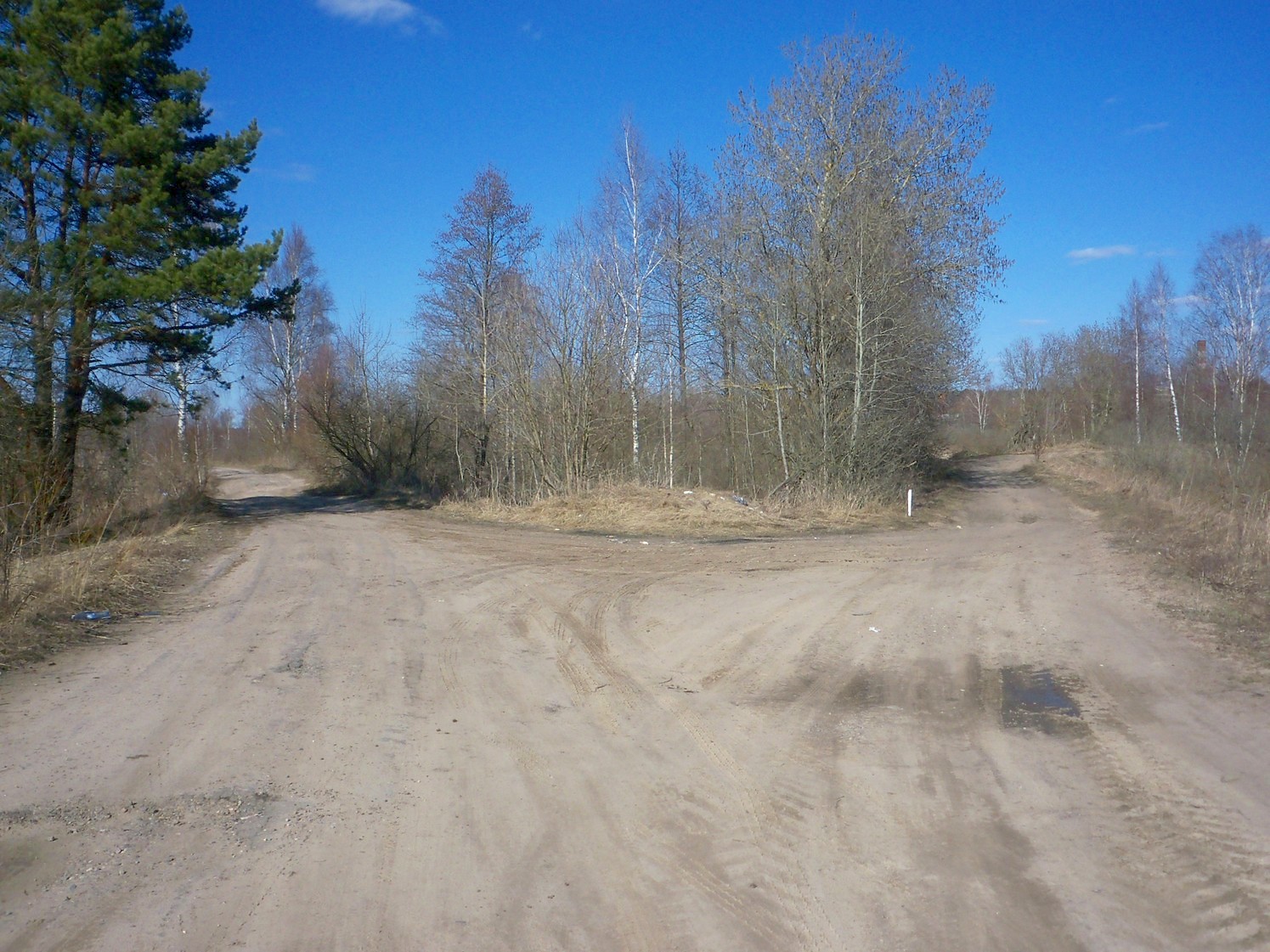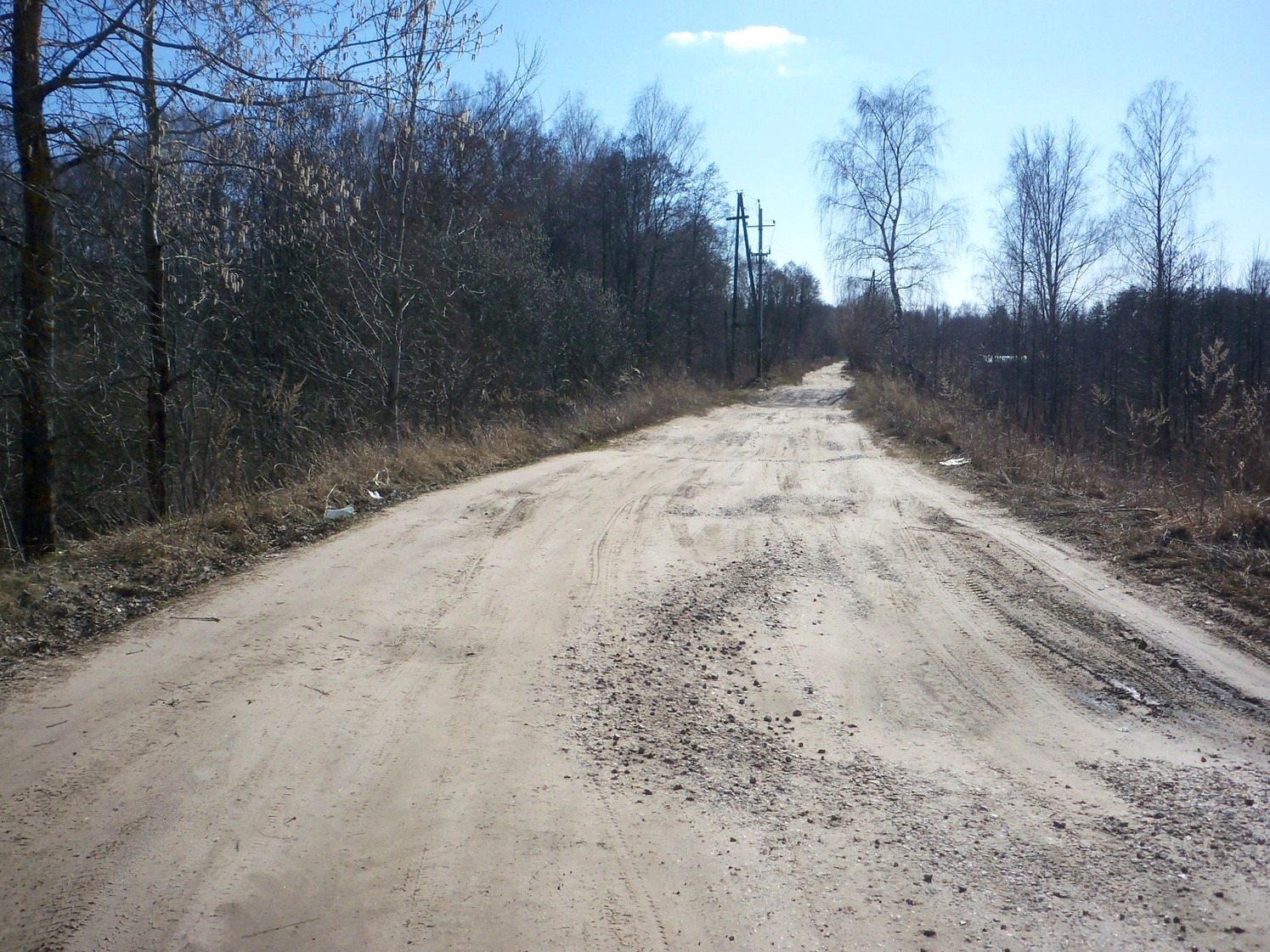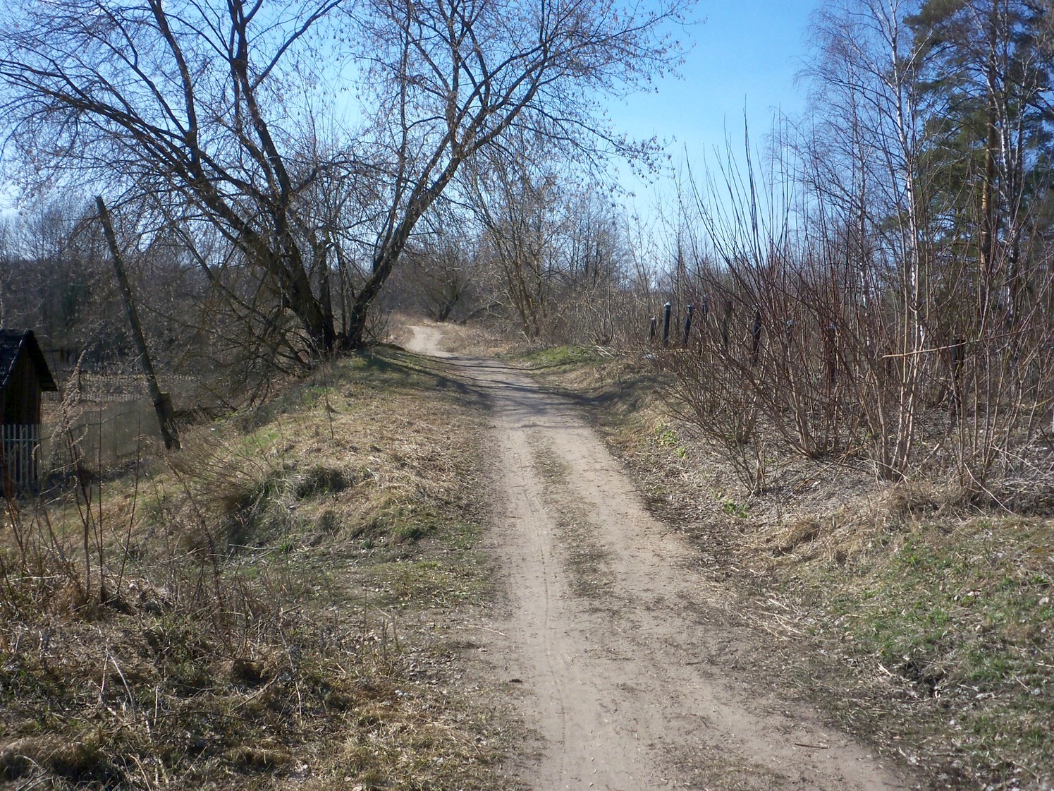 Я впервые побывал здесь 12 апреля 2016 года. Двигаюсь из посёлка Изоплит на велосипеде с пробитой шиной, то есть с большими усилиями. Несмотря ни на что, решаю не отступать от плана и добраться до Радченко. «Переваливаю» через Петербурго-Московскую железную дорогу.