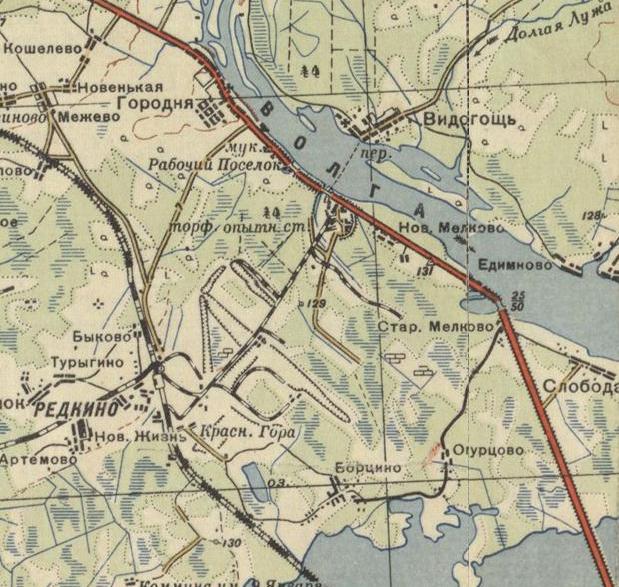 В 1940-х годах был прорыт судоходный канал Волга — Редкино. Редкино превратилось в речной порт — во что сейчас трудно поверить. Узкоколейная железная дорога пролегала вдоль южного берега канала. На её месте теперь грунтовая дорога.