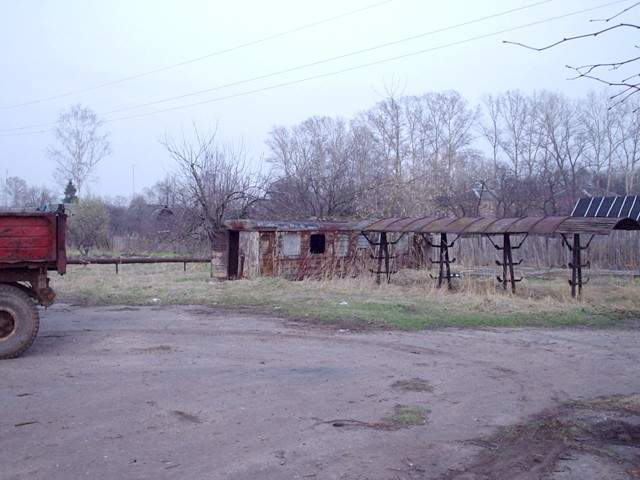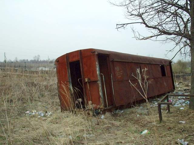 Разгромленный пассажирский вагон ПВ40 (ПВ51), стоящий недалеко от депо.
