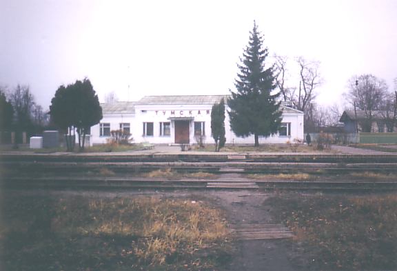 перед вокзалом станции Тумская. Слева — локомотивное депо Тумская.