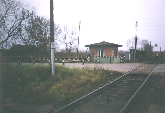 С левой стороны от пути — здание поста дежурного по переезду.