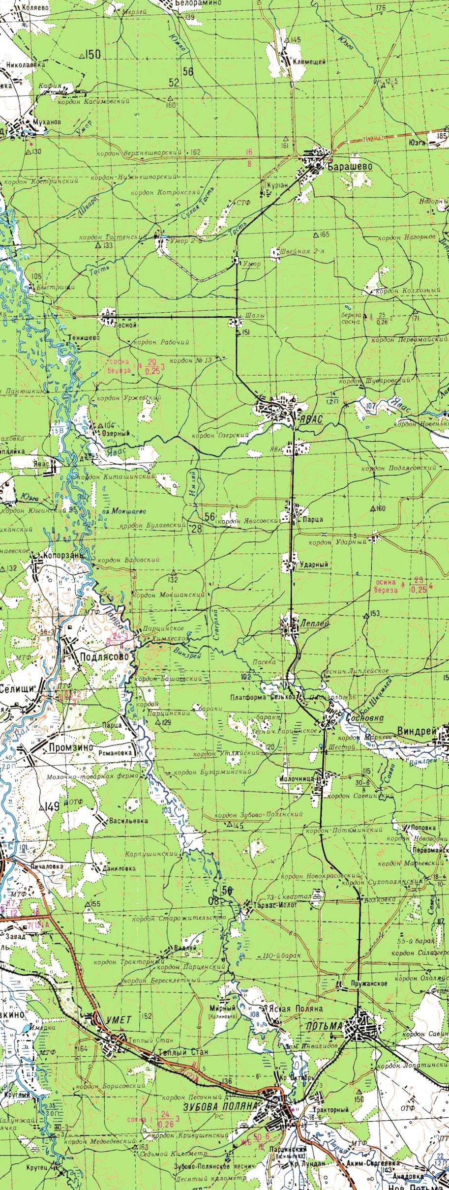 ЖЕЛЕЗНОДОРОЖНАЯ ЛИНИЯ ПОТЬМА — БАРАШЕВО СХЕМЫ И ТОПОГРАФИЧЕСКИЕ КАРТЫ