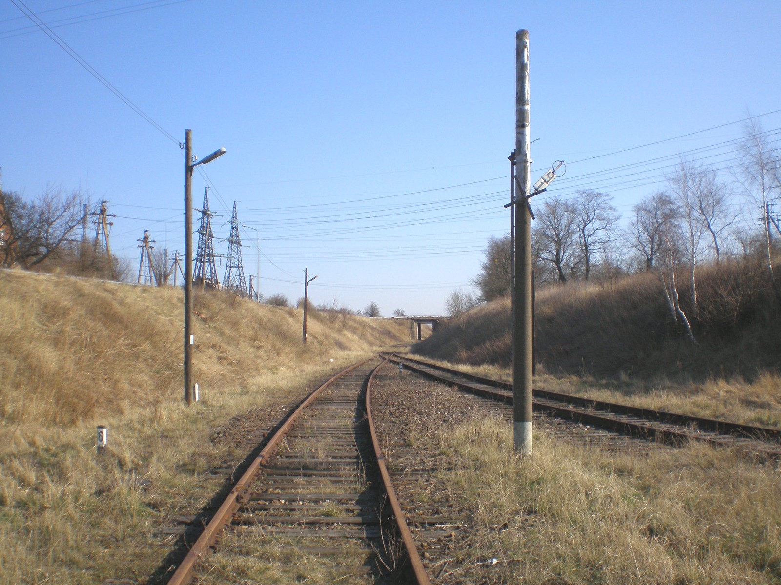 Станция Янтарный остаётся позади. Вид в сторону Донского.