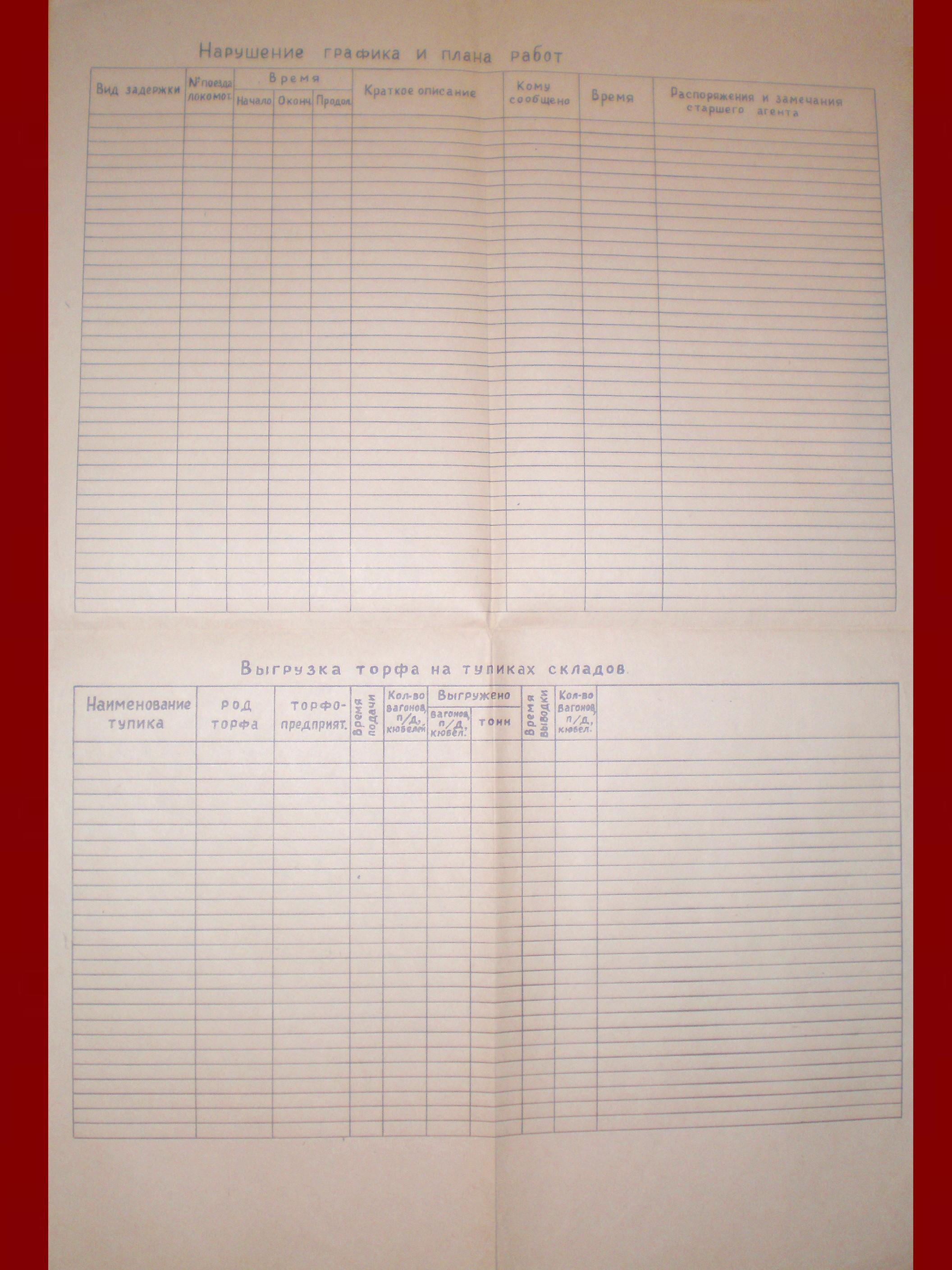 Бланк графика исполненного движения поездов. Получен в диспетчерской на станции Ситниково.