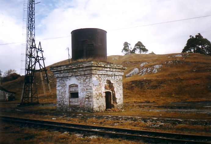 Заброшенная старинная постройка на станции Тирлян (бывшая водонапорная башня).