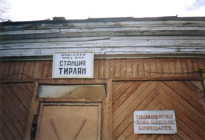 Таблички на главном здании станции Тирлян.