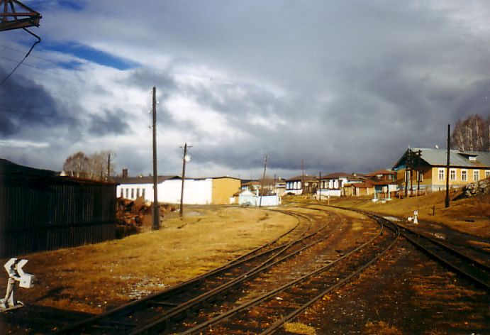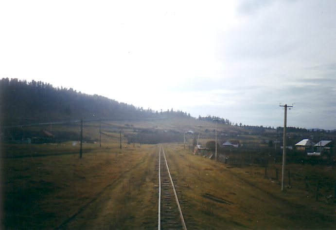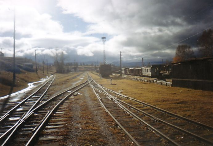 Тепловозы, стоящие на линии (к востоку от станции Ишля). Вид в восточном направлении.
