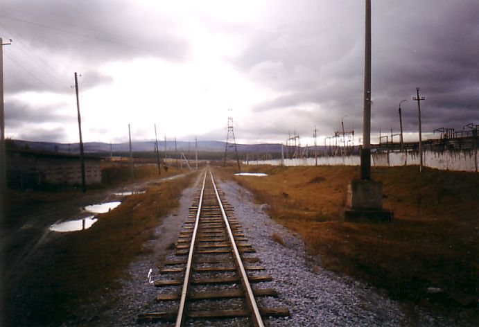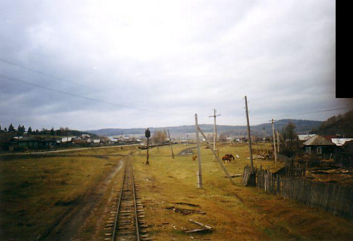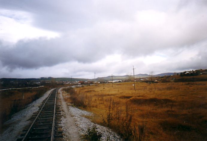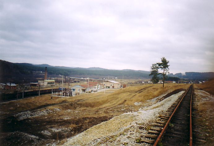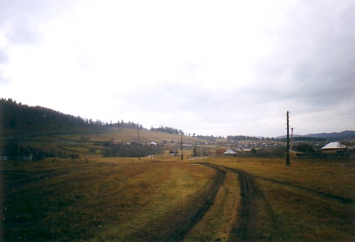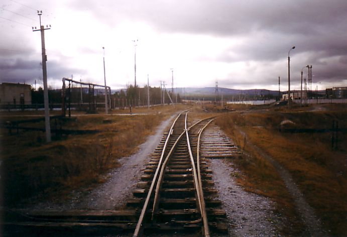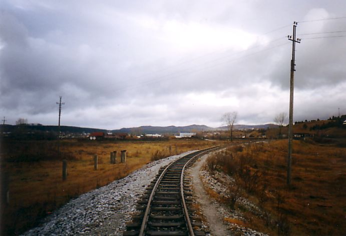 Южная окраина Тирляна, начало ветки на металлургический завод. Вид в южном направлении.