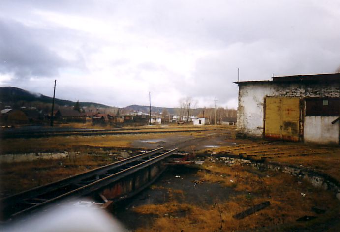 Впереди - полуразрушенная станция Тирлян, справа - бывшее локомотивное депо.