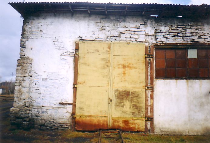 Сохранившиеся рельсы под воротами бывшего локомотивного депо.