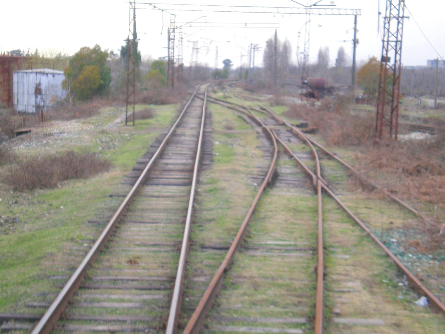Железнодорожная линия в порту Очамчира. Впереди — углеразгрузочная площадка порта.