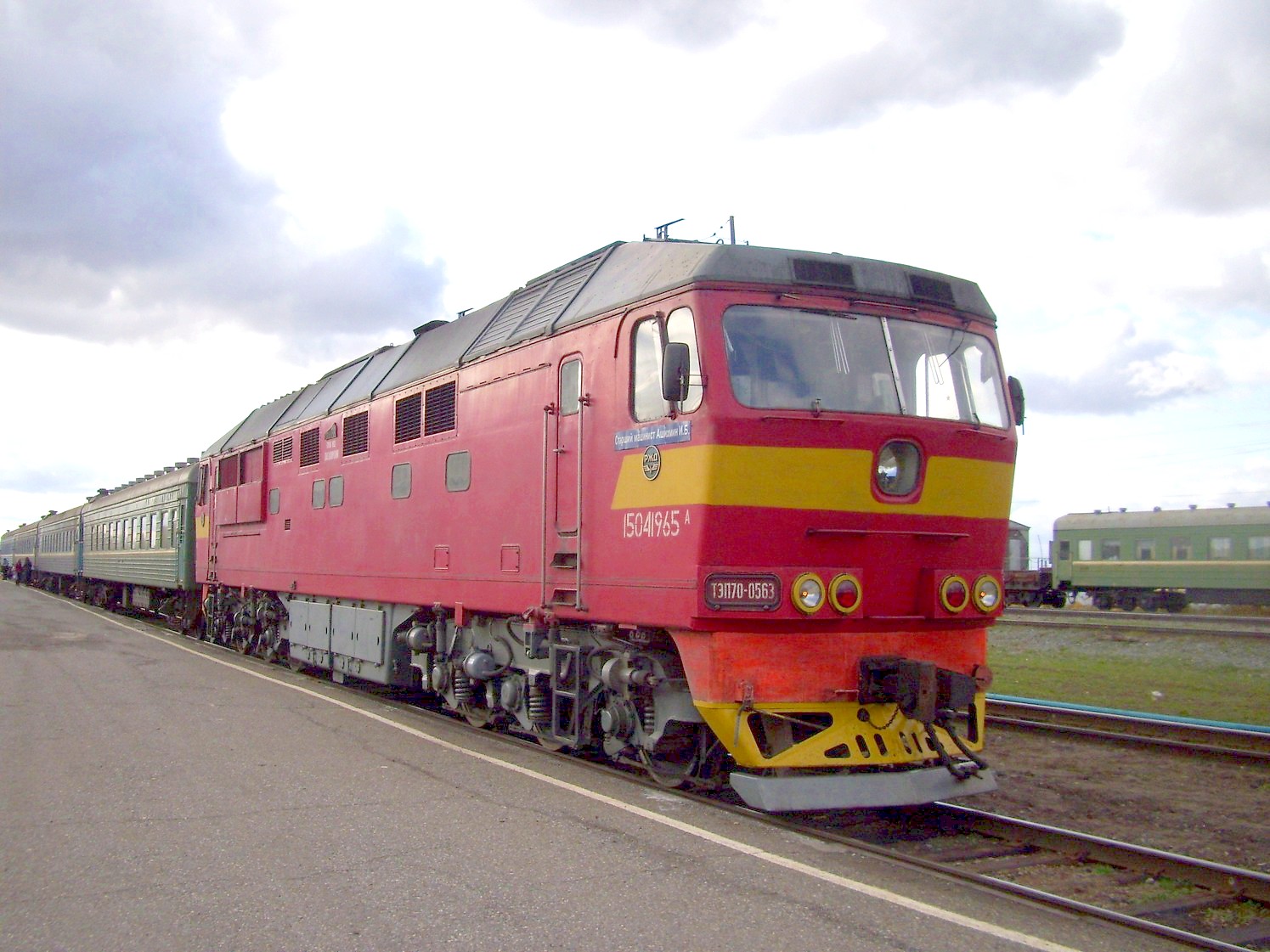 Станция Набережные Челны. Тепловоз ТЭП70-0563 с пригородным поездом Набережные Челны — Ижевск.
