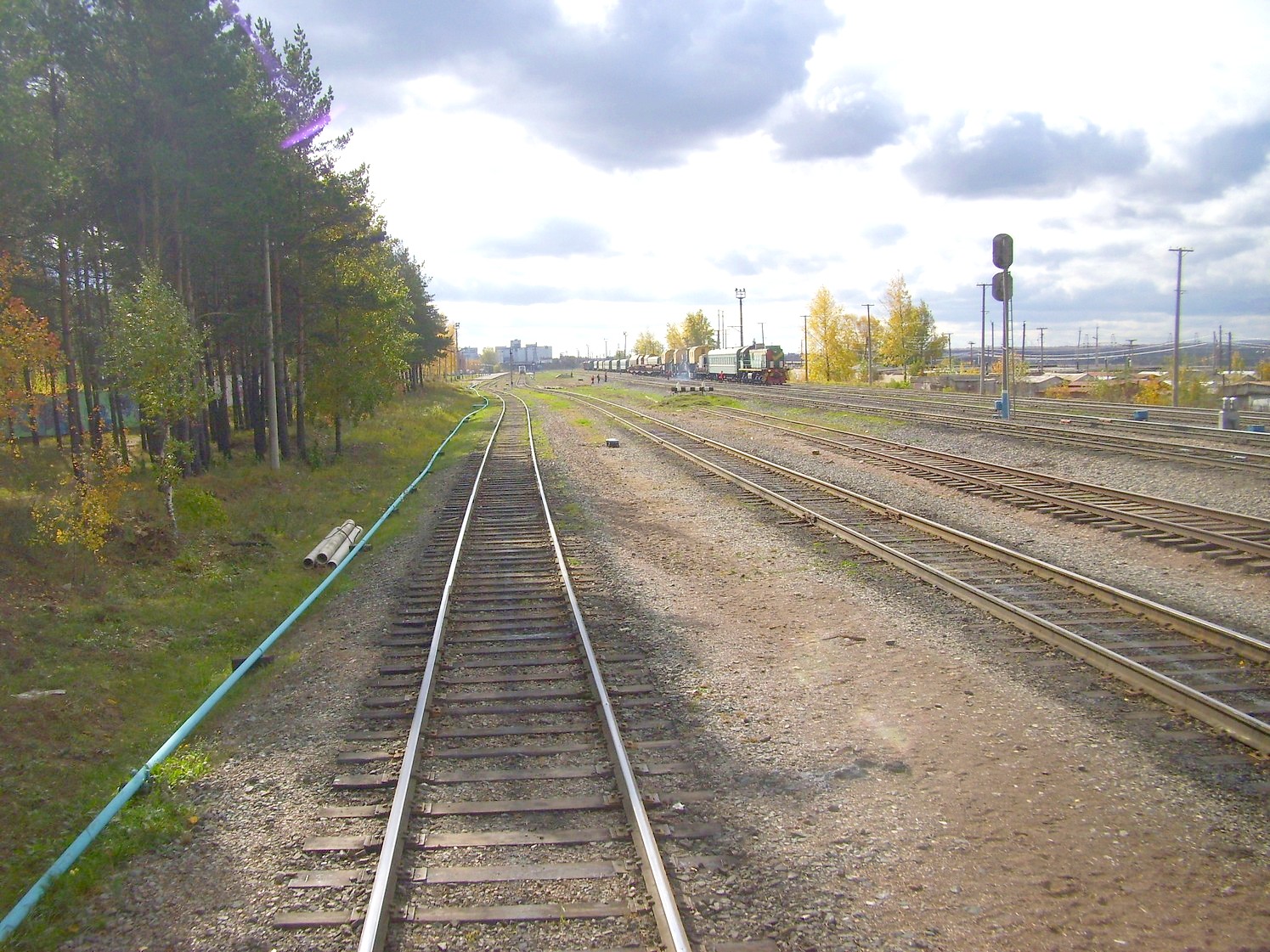 Станция Набережные Челны. Вид на север, в сторону Агрыза. Вдали находится вокзал.