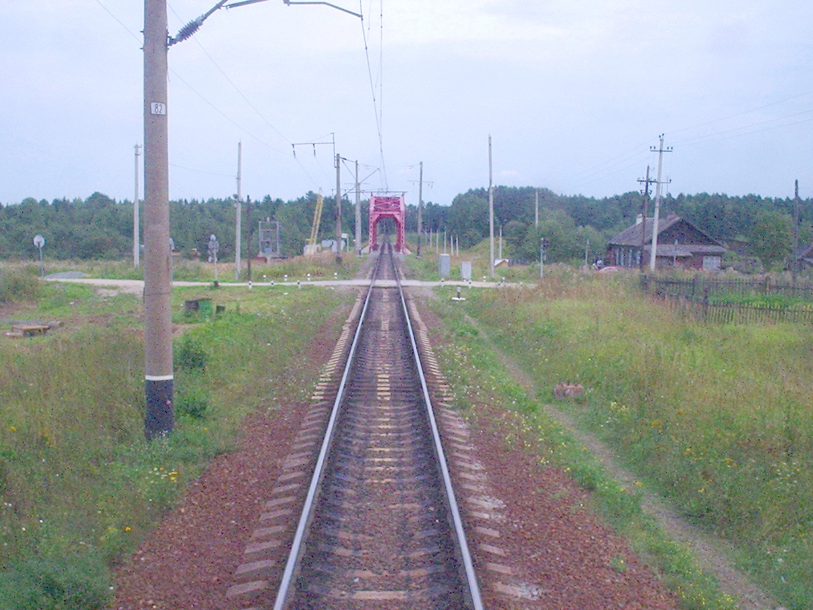 Автомобильный переезд (пересечение с автодорогой Любим — Ярославль) на перегоне Любим — Жарок. Вид в восточном направлении.