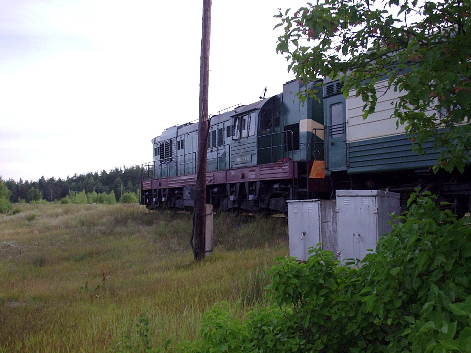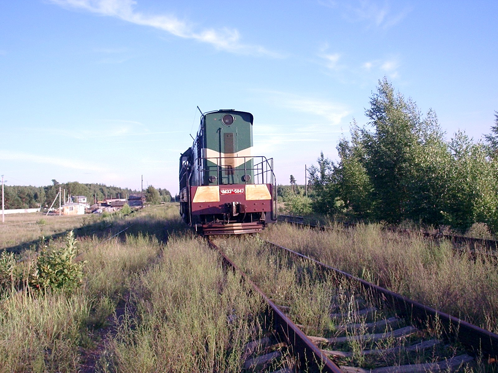 Тепловоз ЧМЭ3т-5847 в процессе обгона на путях станции Фролищи. Вид в южном направлении.