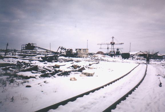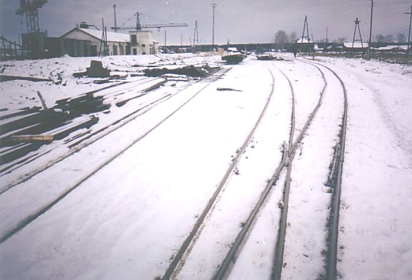 Подъездной путь широкой колеи вблизи полуразрушенного нижнего склада