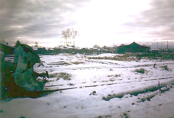 Впереди — крайние дома посёлка Восточный. Вид в сторону разъезда 6 км.
