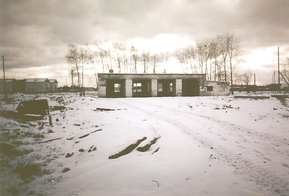 Разгромленное депо узкоколейной железной дороги.