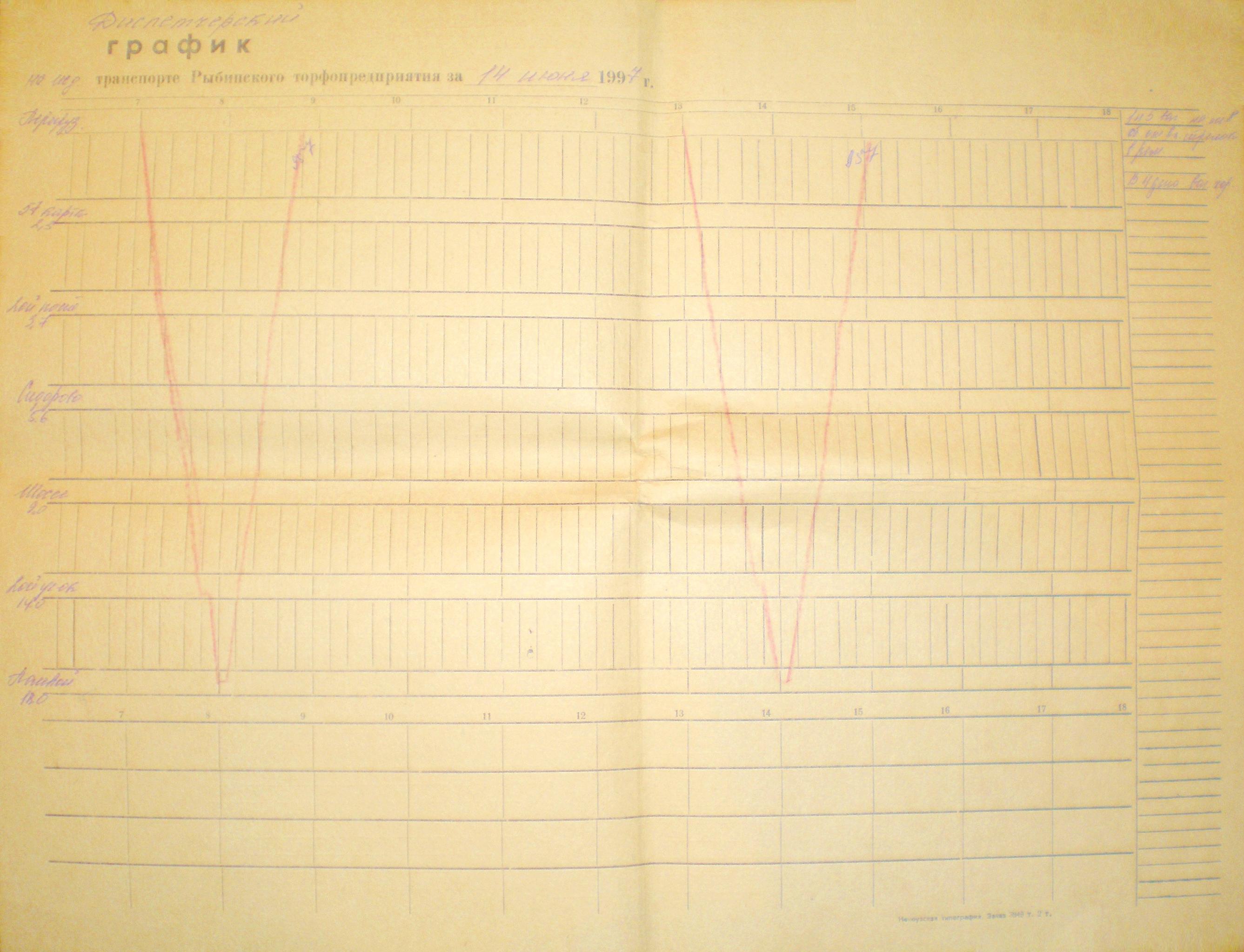 График исполненного движения поездов за 26 июля 1997 года (фрагмент).