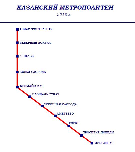 Схема Казанского метрополитена, по состоянию на 2018 год.