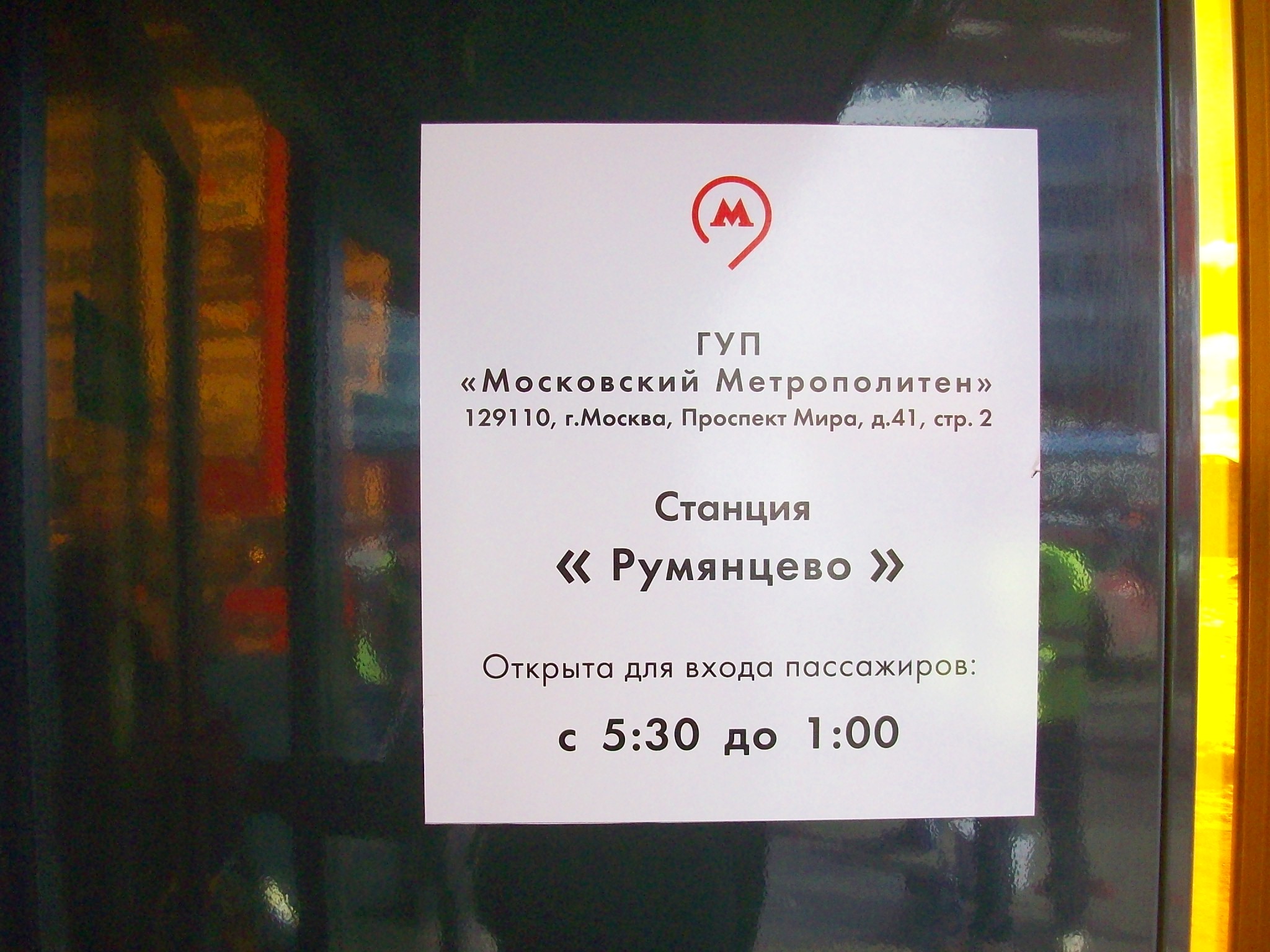 МОСКОВСКИЙ МЕТРОПОЛИТЕН, СОКОЛЬНИЧЕСКАЯ ЛИНИЯ, СТАНЦИЯ «РУМЯНЦЕВО»