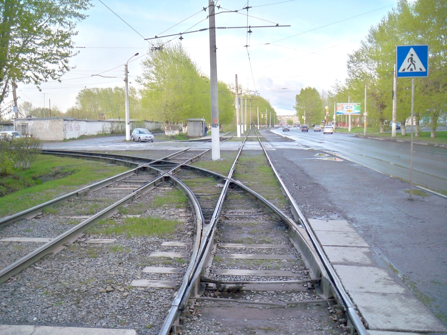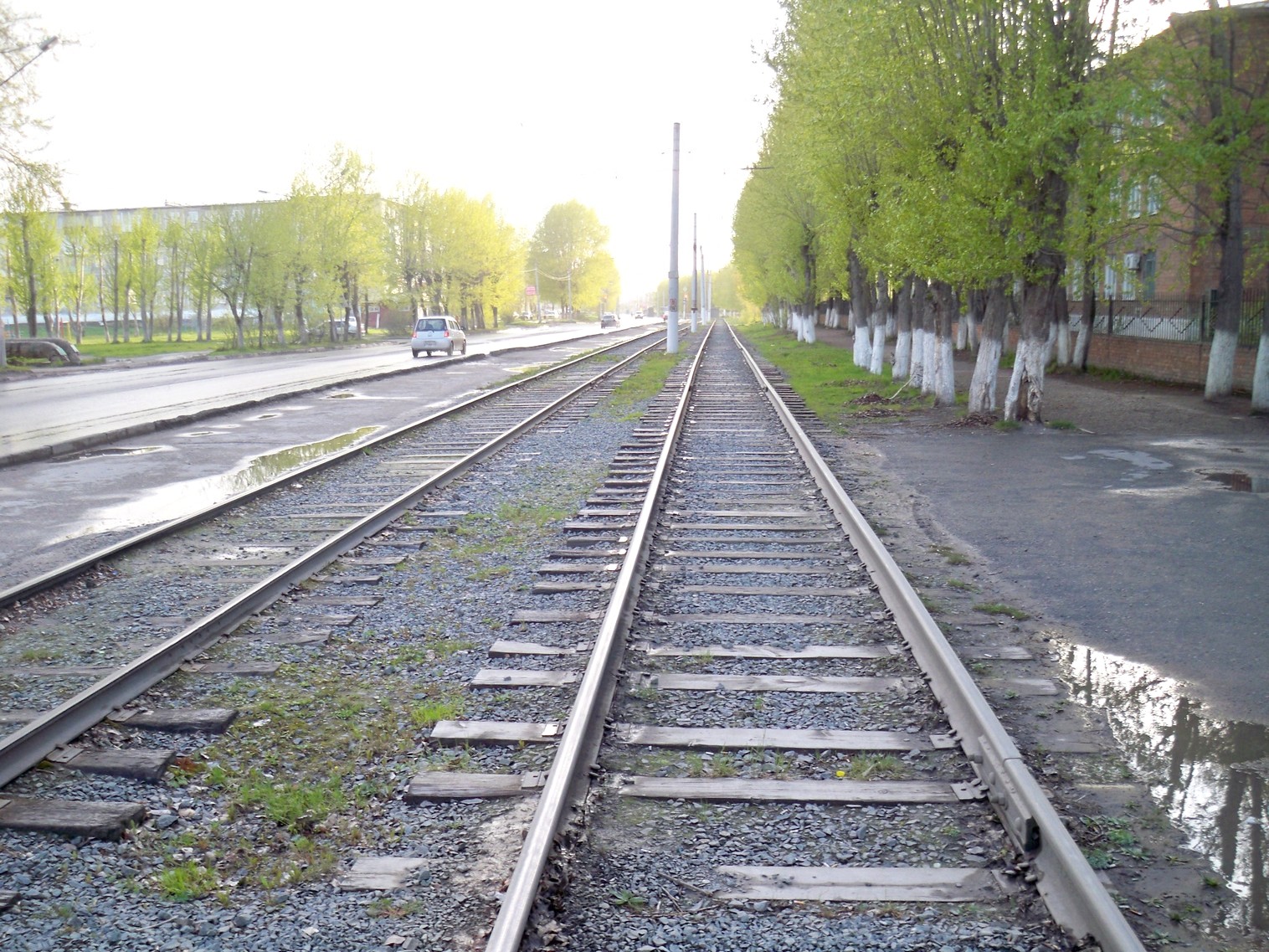 Линия между остановками «Политехникум» и «Трамвайное управление». Вид в южном направлении.