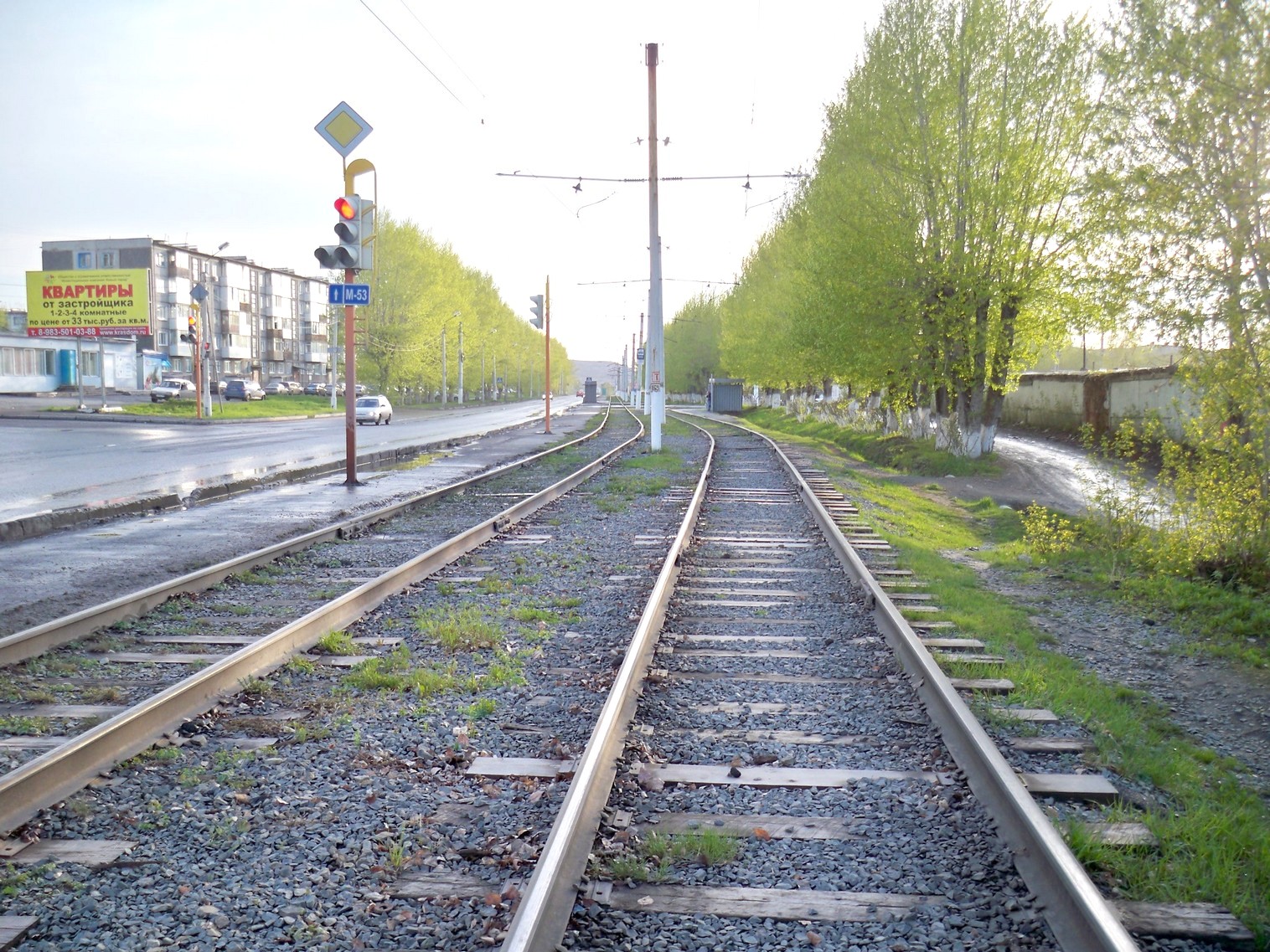 Линия у остановки «Сады». Вид в сторону центра города.