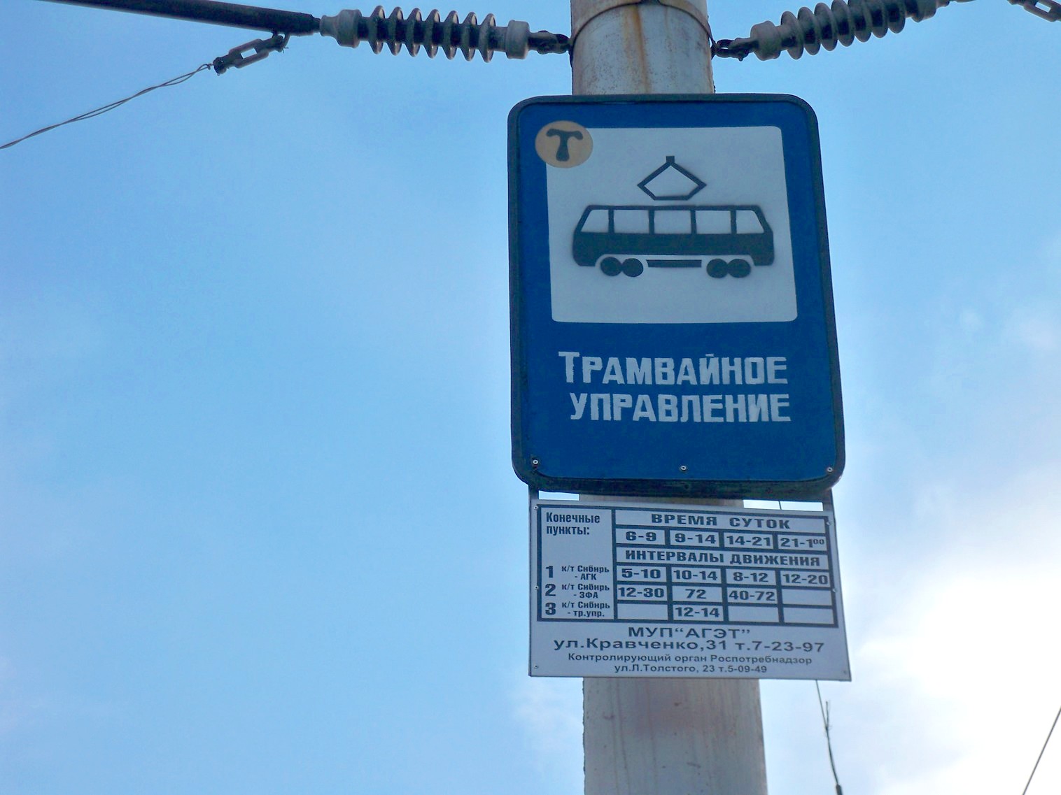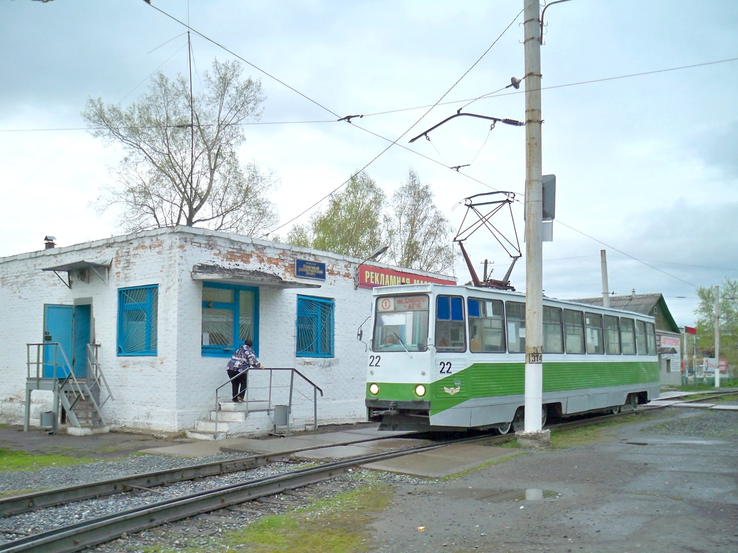 У остановки «Трамвайное управление». Вагон следует в сторону АГК.