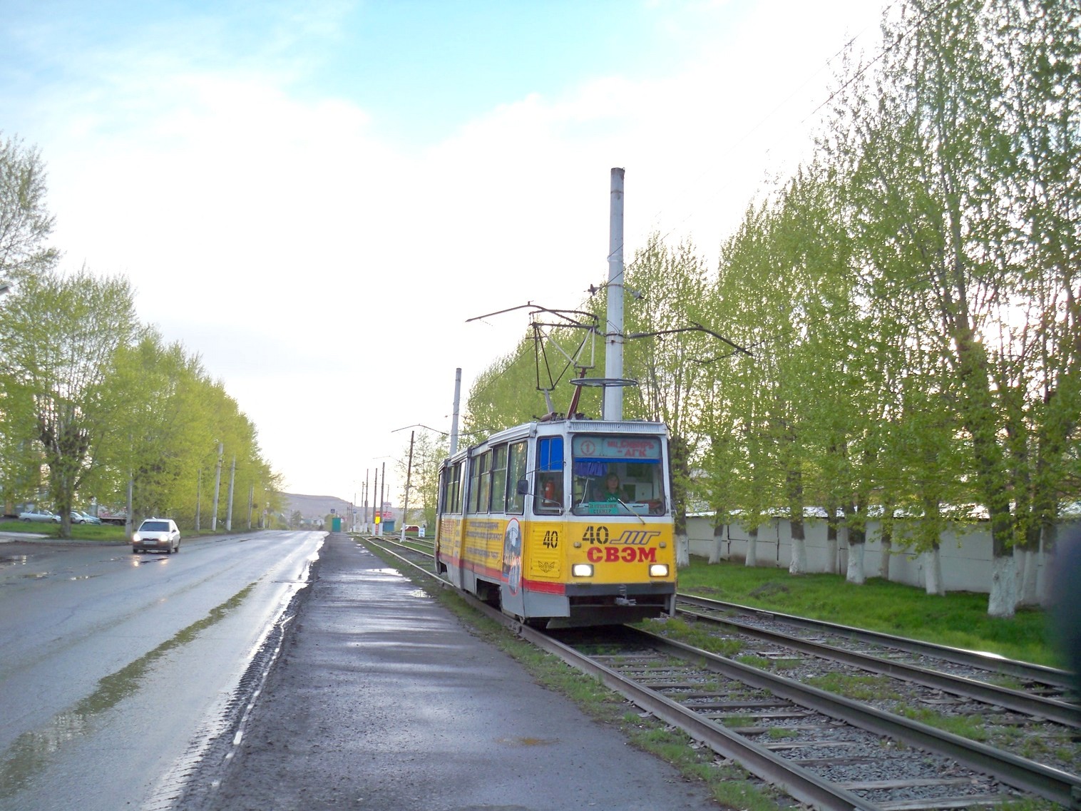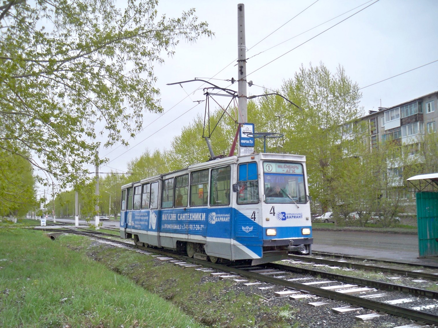 У остановки «Квартал 7Б». Вагон следует в сторону АГК.