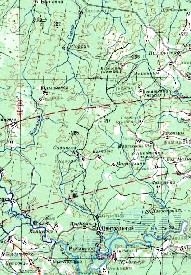 Узкоколейная железная дорога на топографической карте масштаба 1:200 000, изданной в 1980 году.