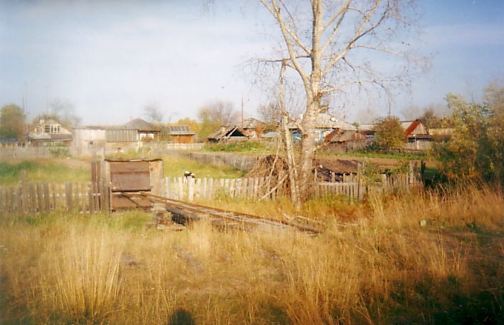 Рядом с этим домом стоял огромный самодельный болотоход (подобные машины в обиходе называют «каракатами»). Ещё две избы в посёлке иногда используются для ночлега заезжими охотниками. Вода во всех колодцах оказалась совершенно гнилая. Поэтому, натаскав из развалин сухих дров, развожу костёр у найденного прудика, кипячу воду из него.