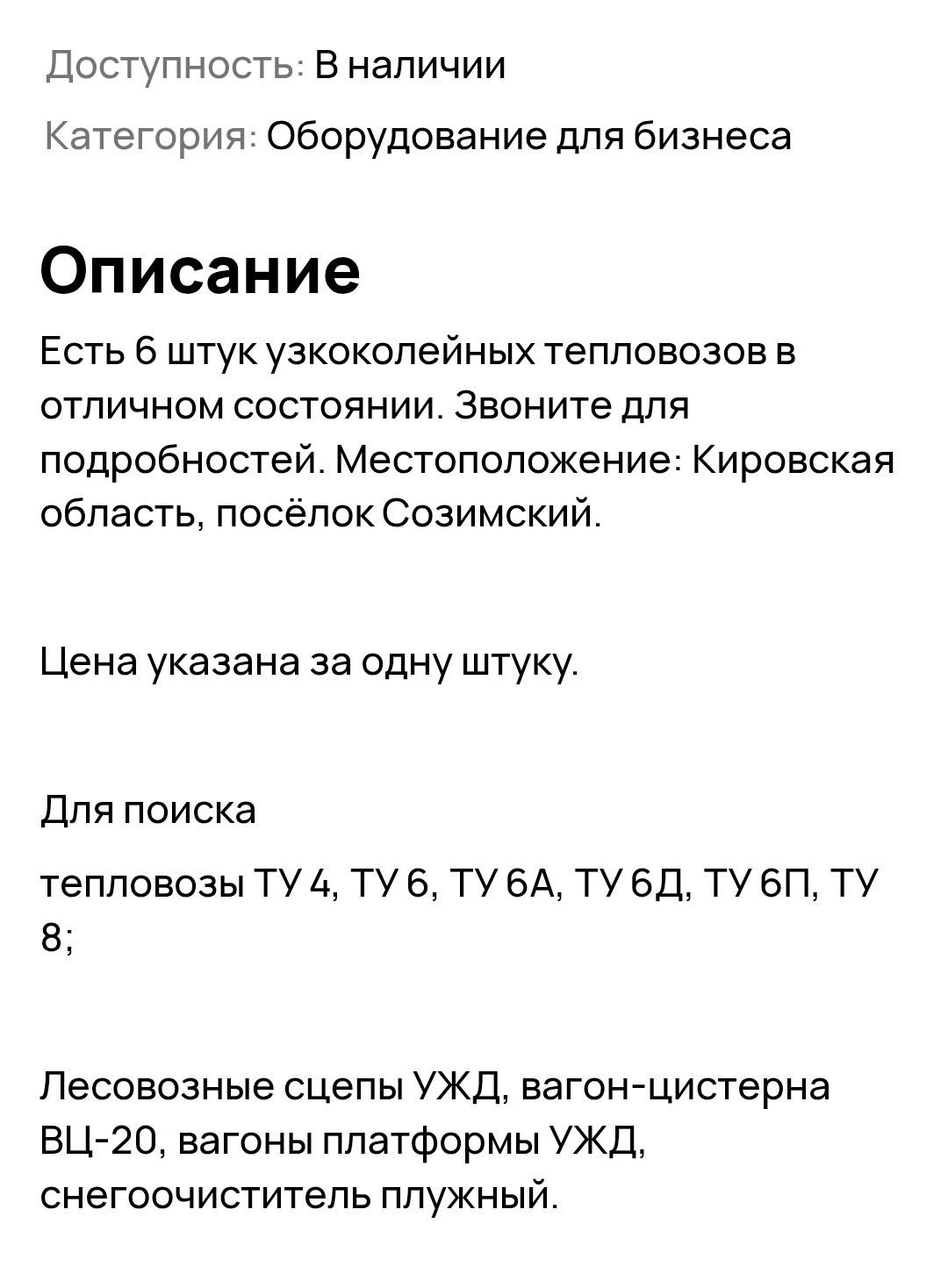 ТЕПЛОВОЗЫ И ВАГОНЫ СОЗИМСКОЙ УЖД ПРОДАЮТ НА АВИТО