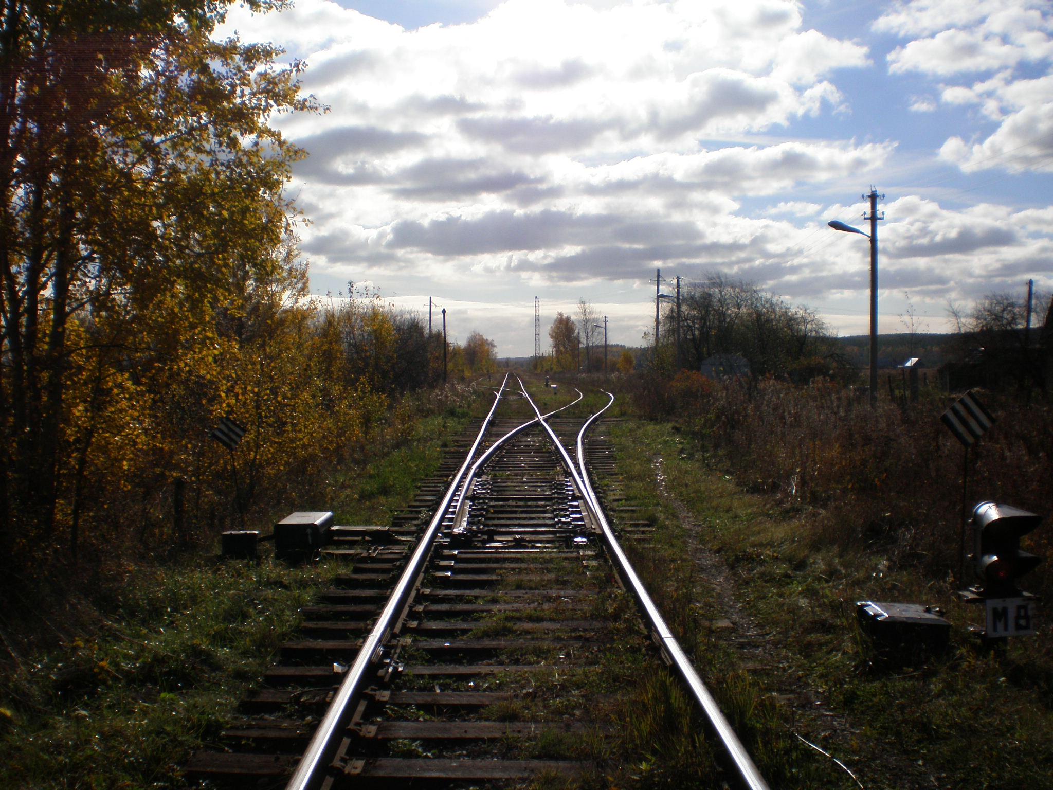 Впереди — северная горловина станции Разъезд №1. Вид в южном направлении.