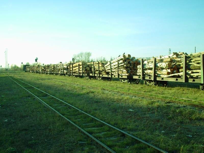Станция Красная II. Состав с грузом сортиментов, прибывший со станции Угольная.