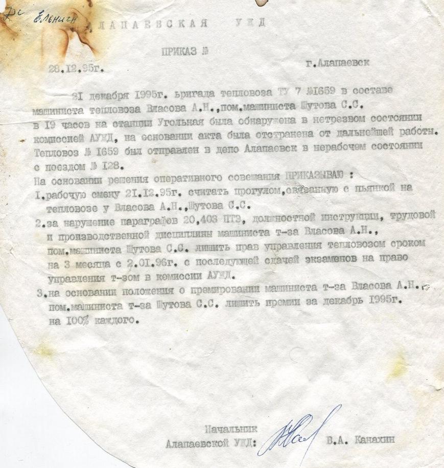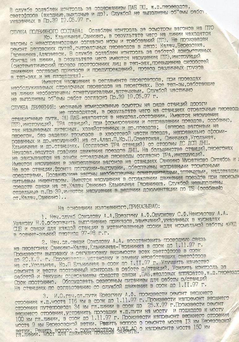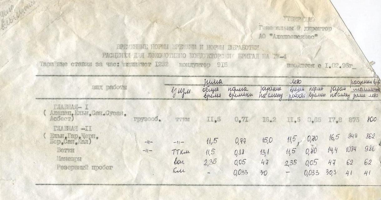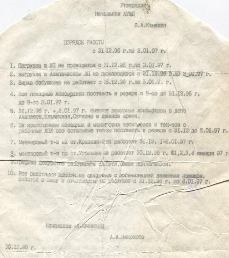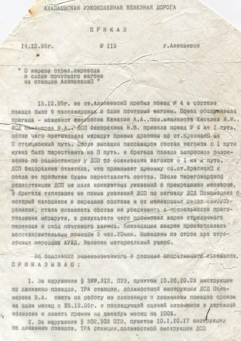 АЛАПАЕВСКАЯ УЗКОКОЛЕЙНАЯ ЖЕЛЕЗНАЯ ДОРОГА ДОКУМЕНТЫ, ПРИКАЗЫ РАЗНЫЕ