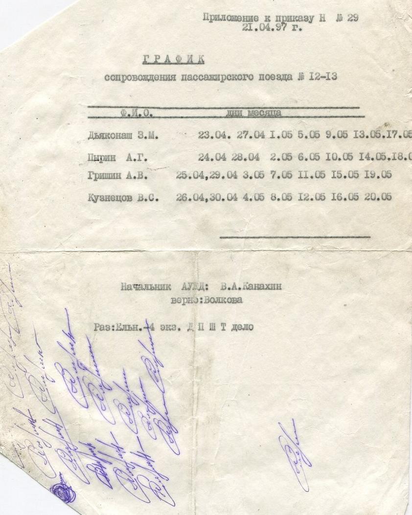 График сопровождения пассажирского поезда. 1997 год.