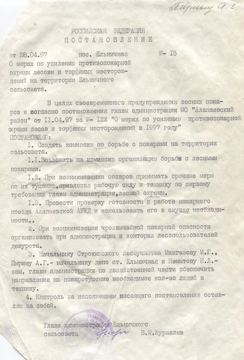 Постановление. 1997 год.