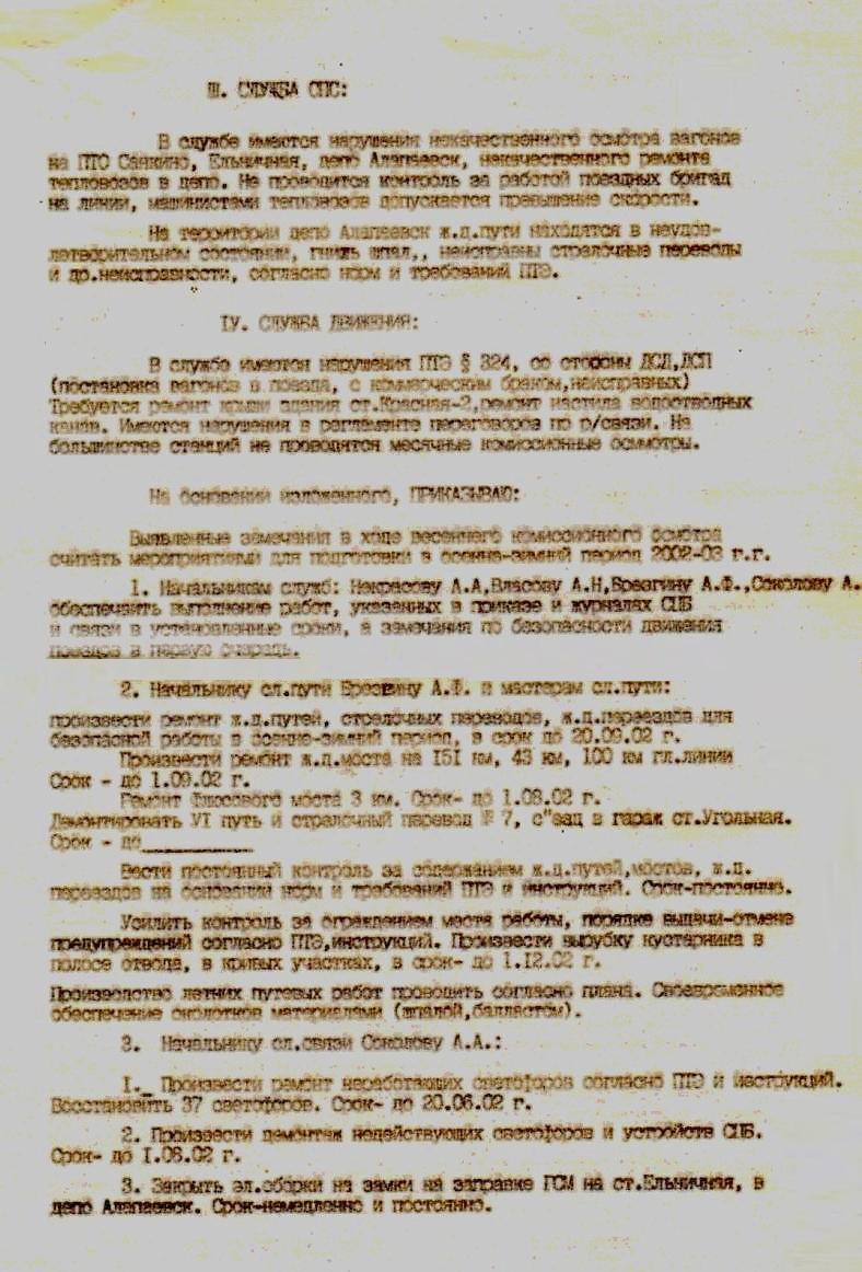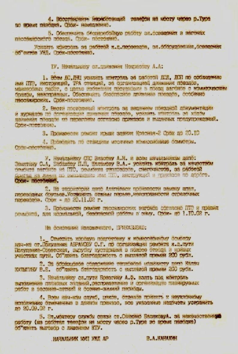 Приказ №18 «О результатах весеннего комиссионного осмотра УЖД». Подписан 29.05.2002 года.