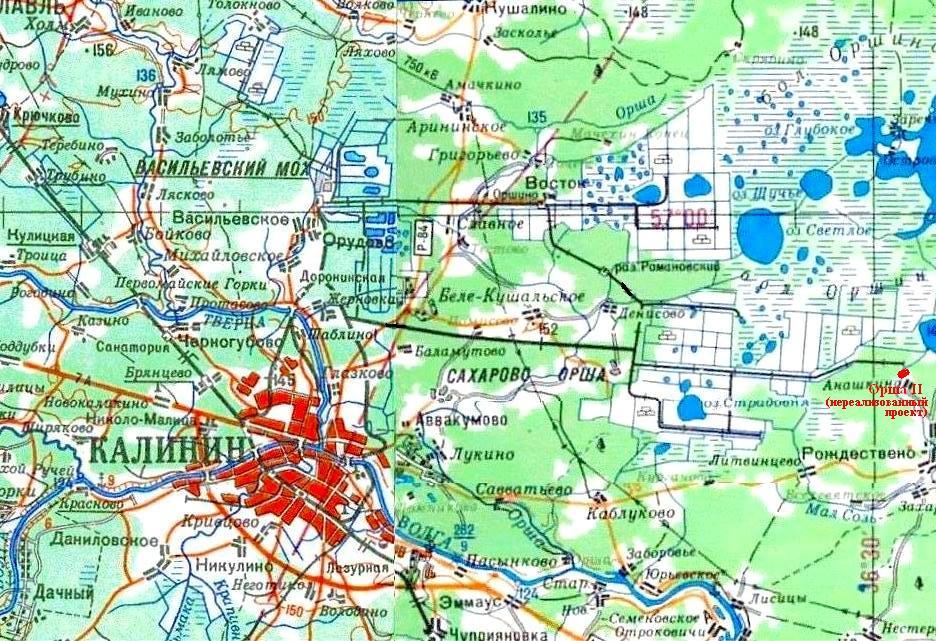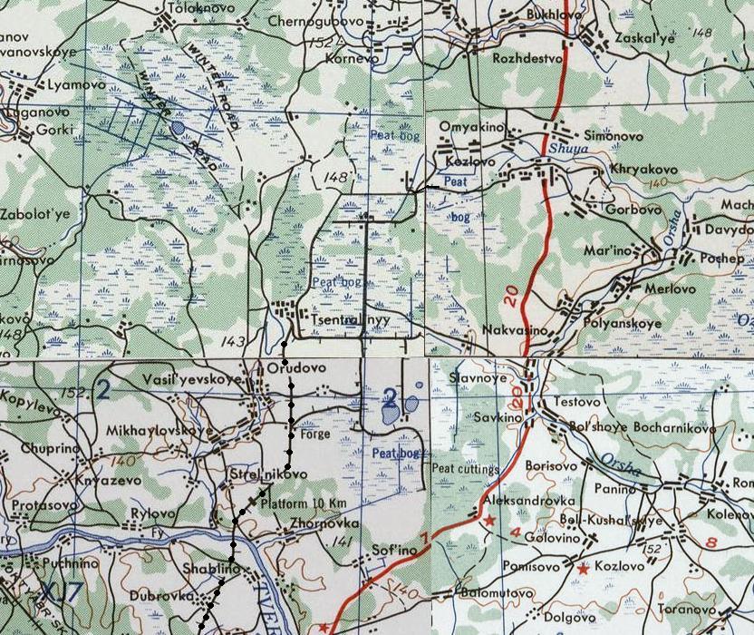 (информация взята в основном из карт, изданных в СССР). Железнодорожная линия широкой колеи