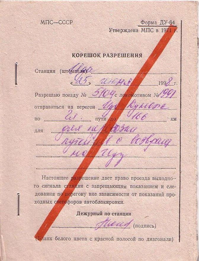 Разрешение на проследование перегона Ида - Кунож (1998 год).