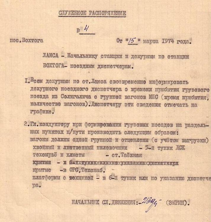 Служебное распоряжение от 15 марта 1974 года.
