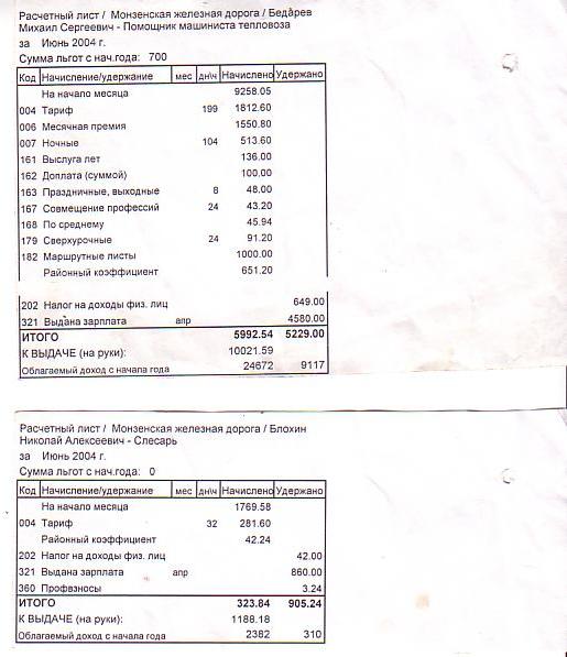Расчётные листы по зарплате работников