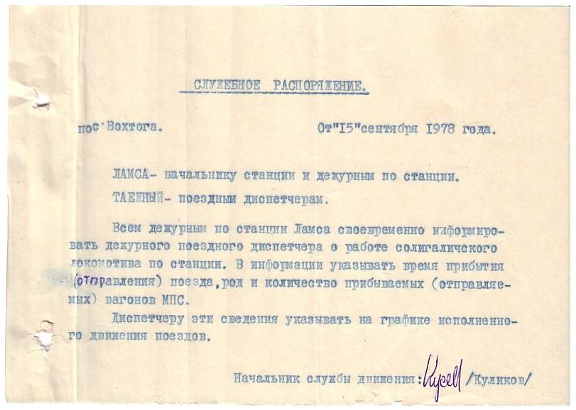 Служебное распоряжение от 15 сентября 1978 года.