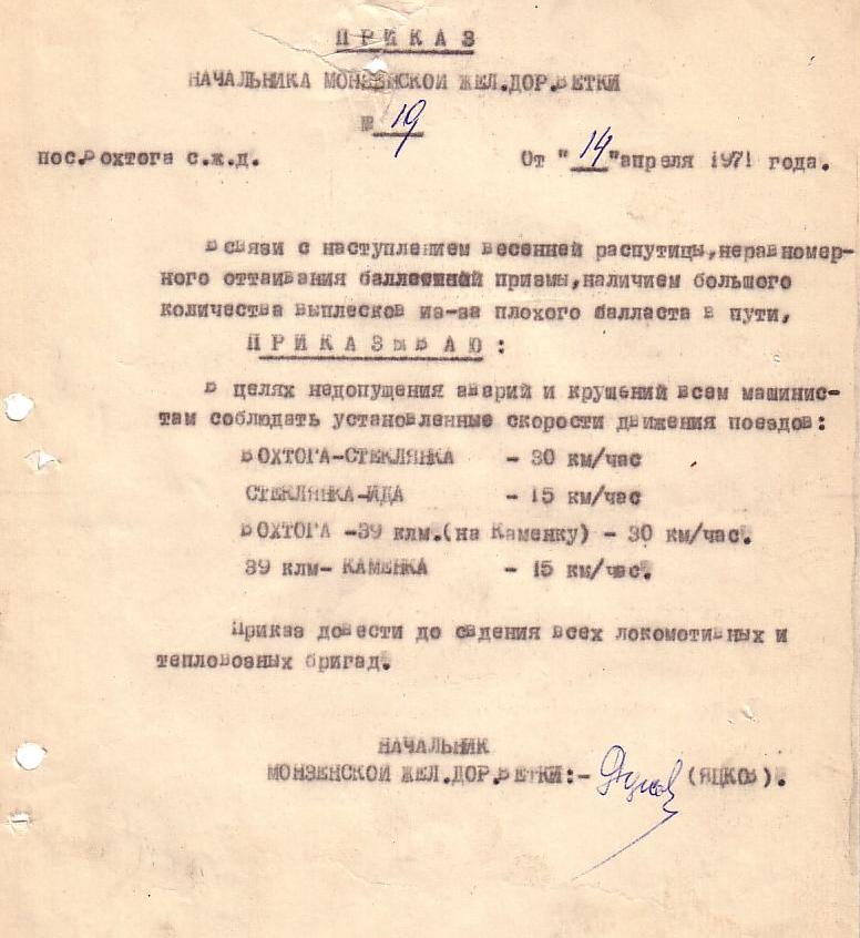 Приказ от 14 апреля 1971 года (о скоростях движения).