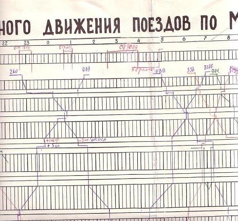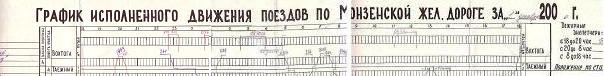 Фрагмент графика исполненного движения поездов Монзенской железной