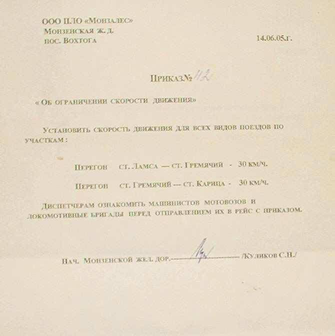 МОНЗЕНСКАЯ ЖЕЛЕЗНАЯ ДОРОГА ДОКУМЕНТЫ