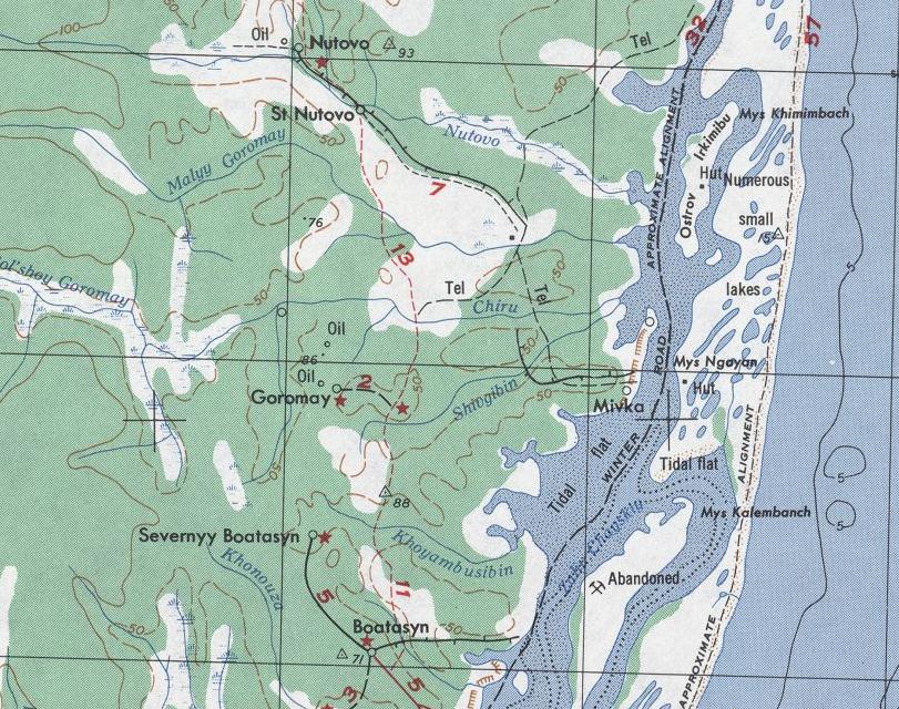 Узкоколейные железные дороги вблизи посёлков Нутово и Боатасин, мыса Нгаян