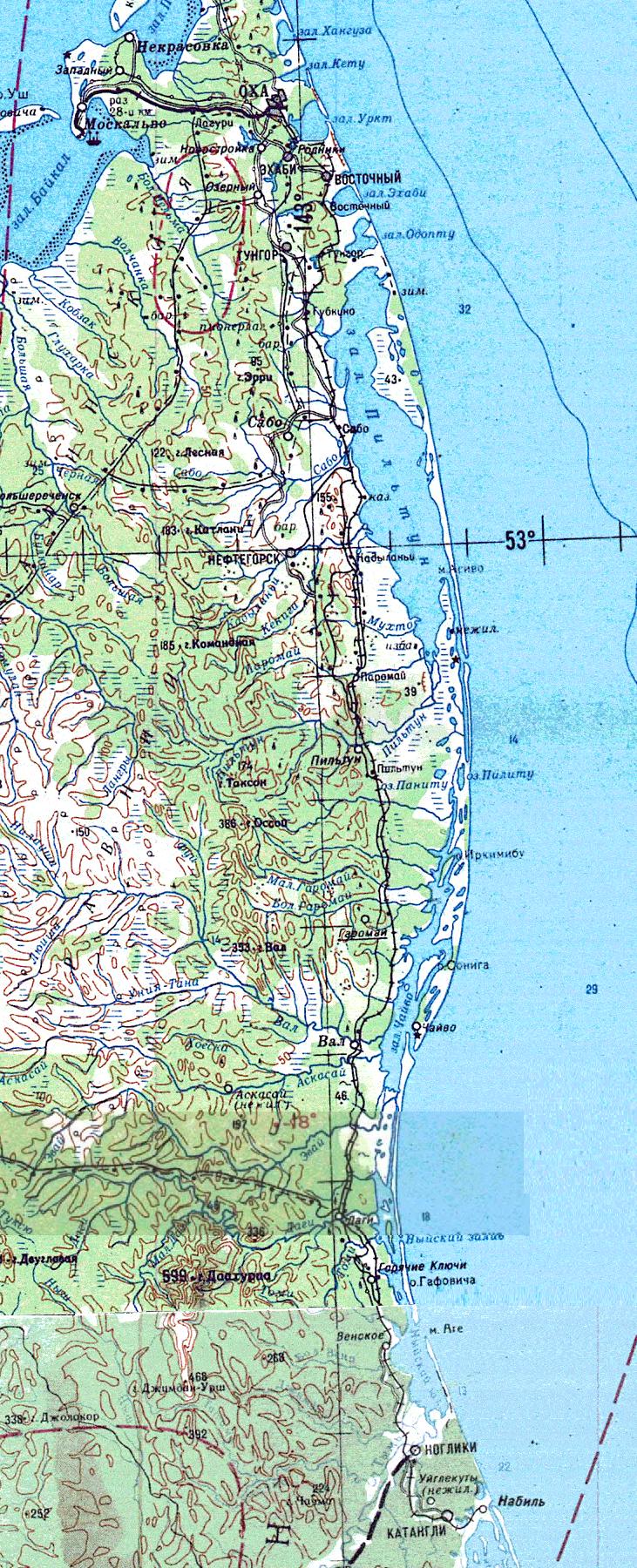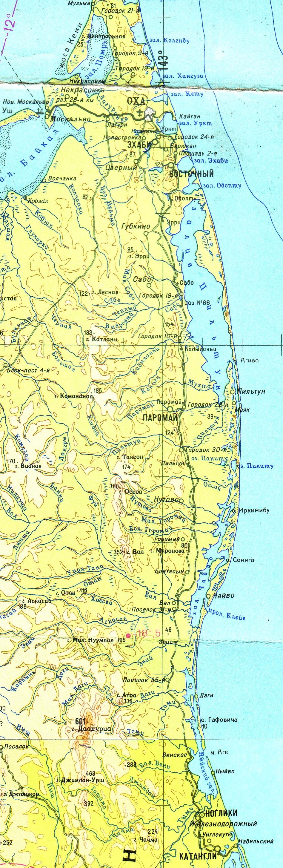 УЗКОКОЛЕЙНАЯ ЖЕЛЕЗНАЯ ДОРОГА ОХА — НОГЛИКИ ТОПОГРАФИЧЕСКИЕ КАРТЫ